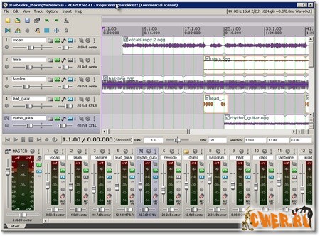 Многофункциональный аудио-редактор Reaper, позволяющий редактировать MP3, OGG и MIDI файлы и записывать звук с микрофона в WAV и MIDI форматы. Оогромное количество звуковых слоев, можно выбрать частоту регенерации, количество каналов, формат выходного файла.
