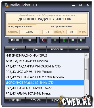 RadioClicker - Программа для прослушивания радиостанций и просмотра ТВ через интернет.В программе собраны практически все online-станции радио и ТВ вещающие на русском языке через сеть интернет.