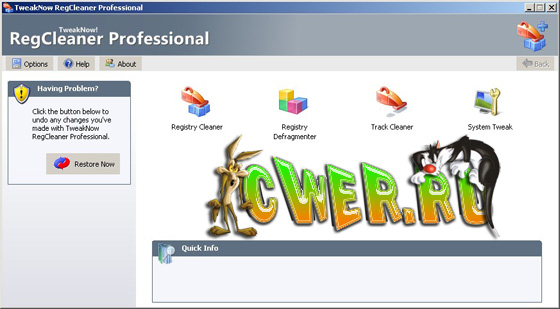 TweakNow RegCleaner помогает очистить реестр от ненужных записей. Все приложения, с которыми вы работаете, при деинсталляции должны убирать все сделанные ими записи в системном реестре. Однако очень многие программы этого не делают. Из-за этого реестр переполняется ненужными записями и разрастается в размерах, что, в свою очередь, приводит к замедлению работы системы. TweakNow RegCleaner быстро сканирует реестр, находит неиспользуемые значения и удаляет их. При этом программа создает файл отката, который поможет восстановить исходные значения в случае, если работа программы вас не устроит.