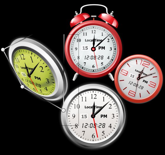 Vector Clocks - полностью масштабируемые часы-будильник на рабочий стол. Вы можете поместить его в любом месте экрана, поворачивать часы в любую сторону, изменять размеры и даже добавлять трехмерную перспективу просмотра без потери качества.