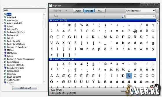PopChar - утилита представляющая собой всплывающее окно, которое может располагаться поверх всех остальных окон и выводить таблицу различных символов, которые пользователь может вставить в текст любого документа. Кроме стандартных букв и чисел, клавиатура имеет множество других знаков, применяющиеся повсеместно, но которые не всегда можно легко вставить в текст. Для использования многих из них, требуется запомнить сложные комбинации клавиш, о которых вы можете просто не знать. Вот почему программа PopChar так полезна. Она позволяет вам вставлять спецсимволы в свои тексты на ходу, не теряя времени на подбор различных комбинаций клавиш или поиск их в интернете. Просто с помощью мыши выберите необходимый символ, и он может быть скопирован куда угодно - будь то текстовый редактор или email клиент. Программа может быть запущена определенной комбинацией клавиш и закрывается немедленно, сразу после вставки символа.
