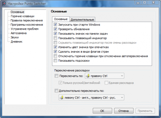 Punto Switcher - предназначена для автоматического переключения раскладки клавиатуры. Иногда Вы забываете переключить раскладку с русской на английскую и получаете, например, «Цштвщцы» вместо «Windows» и, наоборот, не переключив раскладку клавиатуры с английского на русский, Вы получаете «Hjccbz» вместо «Россия». Теперь о переключателе клавиатуры можно просто забыть, переключение будет производиться автоматически.
