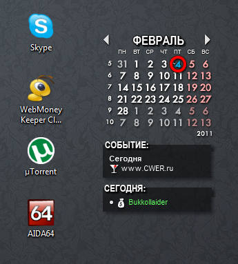 Rainlendar - симпатичный календарик для рабочего стола с поддержкой списка задач на тот или иной день и возможностью переноса соответствующих настроек из Microsoft Outlook. Допускается изменение внешнего вида сменой скина, а также изменение уровня прозрачности календаря.