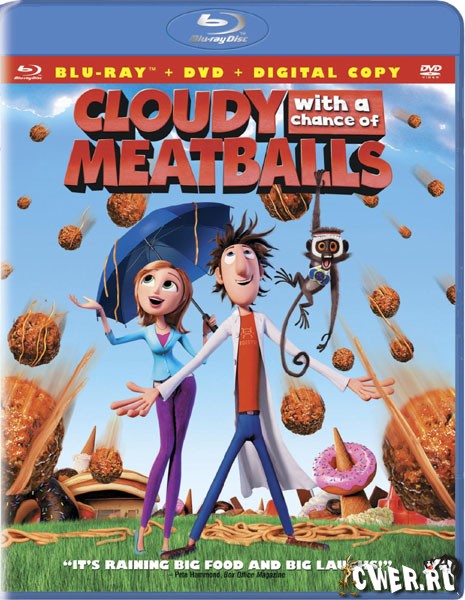 Жители одного унылого городка на острове питались только рыбой. Молодой ученый чтоб понравится девушке, пытается разнообразить жизнь жителей придумав машину-репликатор пищи из влаги облаков и в результате с неба начинают выпадать осадки в виде... еды! Но пища мутировала, справятся ли с ней наши герои?...