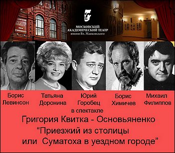 Городничий уездного городка собирает подчиненных ему чиновников и сообщает им о скором приезде ревизора из столицы... Это не комедия Гоголя "Ревизор", а пьеса Григория Квитка-Основьяненко, написанная им на несколько лет раньше комедии Гоголя. Написанная и посланная в Петербург для прохождения цензуры, пьеса затерялась среди бумаг в чиновных кабинетах или среди чиновных читателей. Был ли среди них Николай Васильевич Гоголь и сколь много из одной пьесы попало в другую? Вот вопрос, на который вы сами можете дать ответ, прослушав запись спектакля в исполнении труппы Московского театра им. Маяковского.