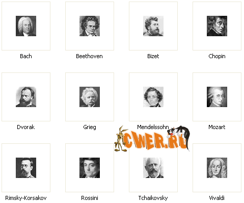 Знаменитые музыкальные произведения представленных композиторов. Отличитесь классической оригинальностью.
