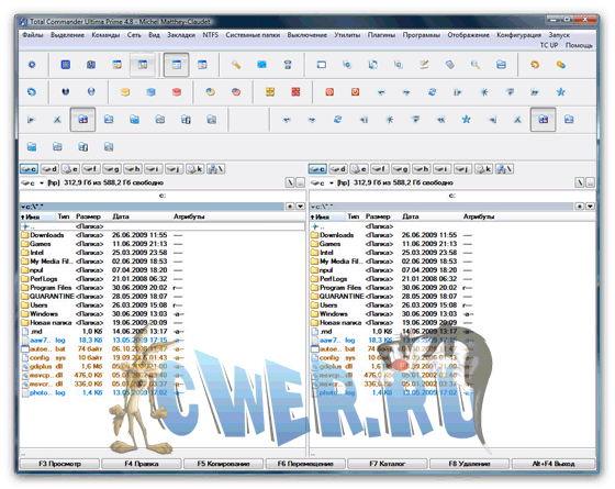 Total Commander - популярный файловый менеджер с практически всеми необходимыми для таких программ функциями. Кроме всех функциональностей, характерных для файловых менеджеров, в Total Commander встроены очень удобные просмотрщики для мультимедиа и графических файлов, распаковщики ZIP, ARJ, LZH, RAR, UC2, TAR, GZ, CAB, ACE и дополнительные dll для других архивных файлов; при помощи встроенного ftp-клиента можно скачивать/закачивать файлы в несколько потоков, есть докачка, поддержка www-прокси при работе с ftp и есть даже такая функция, как подключение-скачивание-отключение в заданное время к заданному ftp. Не будут лишними и такие функции, как UUE/MIME/XXE кодирование/декодирование и разрезка/склейка длинных файлов, а также множество других функций, крайне необходимых для работы с файлами.