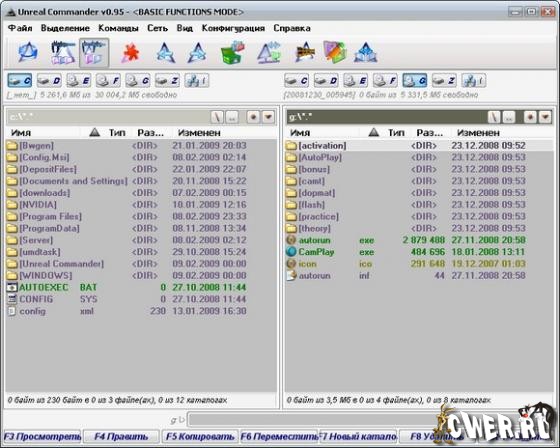 Total Commander - Популярный файловый менеджер с практически всеми необходимыми для таких программ функциями. С очень удобными встроенными просмотрщиками для мультимедиа и графических файлов, распаковщики ZIP, ARJ, LZH, RAR, UC2, TAR, GZ, CAB, ACE и дополнительные dll для других архивных файлов: встроенный ftp-клиент - можно скачивать/закачивать файлы в несколько потоков, есть докачка, поддержка www-прокси при работе с ftp и есть даже такая функция, как подключение-скачивание-отключение в заданное время к заданному ftp.
