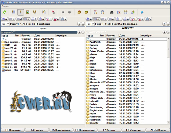 Total Commander - Популярный файловый менеджер с практически всеми необходимыми для таких программ функциями. С очень удобными встроенными просмотрщиками для мультимедиа и графических файлов, распаковщики ZIP, ARJ, LZH, RAR, UC2, TAR, GZ, CAB, ACE и дополнительные dll для других архивных файлов: встроенный ftp-клиент - можно скачивать/закачивать файлы в несколько потоков, есть докачка, поддержка www-прокси при работе с ftp и есть даже такая функция, как подключение-скачивание-отключение в заданное время к заданному ftp.