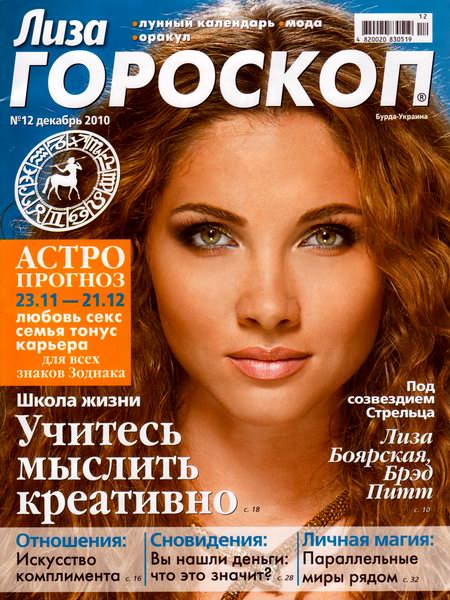 Глянцевый журнал для женщин, которые сверяют свою жизнь со звездами и любят получать положительные эмоции. Как стать хозяйкой своей судьбы? Звезды Вам советуют. Ежемесячные прогнозы для всех знаков Зодиака. Любовь: ее психология и выбор партнера. Погода на завтра. Исцели себя сама. Великие маги и пророки.