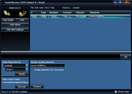 DVD Catalyst - программа для конвертирования и адаптации DVD, кино и видео для КПК. Является функционально-богатым приложением для конвертации DVD и видео в практически любой портативный формат для просмотра ролика на мобильных устройствах. Программа позволяет конвретировать DVD фильмы, а также файлы в форматах AVI, DIVX, XVID, MPEG, MKV и другие в файлы поддерживаемых форматов для iPod, iPhone, PocketPC, HandheldPC, Laptop, XBOX, PS3 и других портативных устройств. В отличии от других программ подобного рода данная программа не требует установки дополнительного программного обеспечения. Полученные файлы можно просматривать как во встроенном медиа плеере, так и в сторонних DIVX плеерах. Программа проста в использовании, не имеет проблем с совместимостью различных кодеков и не требует их дополнительной установки.