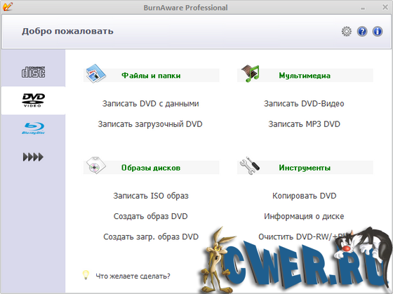 BurnAware Free - относительно небольшая, бесплатная и простая в использовании программа для записи информации и музыкальных композиций на CD, DVD, Blu-Ray и HD-DVD диски, которая пригодится как опытным пользователям, так и новичкам. BurnAware поддерживает работу со всеми типа оптических дисков (включая CD-R/RW, DVD-R/RW, DVD+R/RW, BD-R/RE, HD-DVD-R/RW и DVD-RAM) и аппаратными устройствами записи. Утилита поддерживает создание образов, способна писать мультисессионные диски, имеет опцию проверки записанного содержимого, работает под операционными системами Windows 98/ME/NT/2000/XP/Vista (32/64-bits).