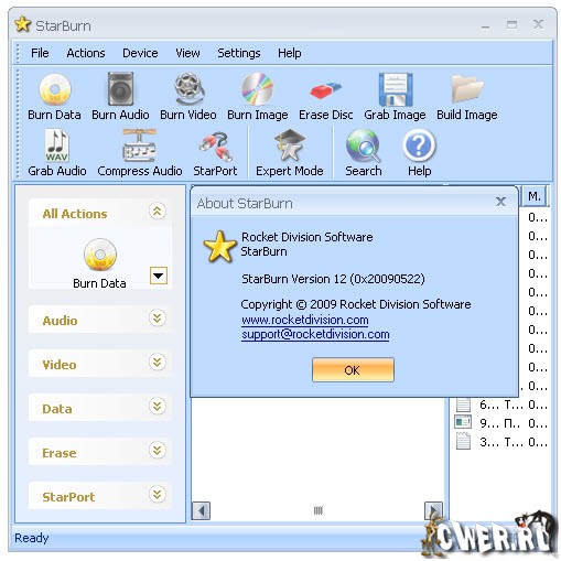 Программа StarBurn является мощным инструментом для захвата, записи и создания CD, DVD, Blu-Ray и HD-DVD данных. Программа StarBurn поддерживает все типы оптических носителей (включая CD-R/RW, DVD-R/RW, DVD + R / RW, BD-R/RE, HD-DVD-R/RW и DVD-RAM), а также широкий спектр устройств записи.