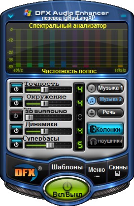 DFX Audio Enhancer — звуковой плагин для улучшения звучания плееров Winamp, Windows Media Player. Качество звучания значительно улучшается за счет совершенствования частотных характеристик, для чего и предназначен этот плагин. С помощью DFX Audio Enhancer устраняются два главных недостатка — срез высоких частот и недостаточное разделение стереобазы и ее глубины, а также добавляются режимы объемного звучания и супербаса. При помощи этого инструмента вы получите высочайшее качество звука и сможете услышать музыку такой чистоты, как будто вы сидите в концертном зале или рядом с музыкантом. Стоит отметить, что все настройки DFX Audio Enhancer располагаются в одном окне интерфейса инструмента. Плагин обладает приятным и нетрудным в настройках и использовании пользовательский интерфейс.