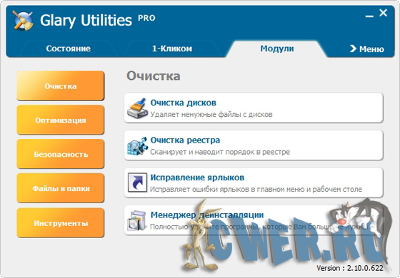 Данное приложение позволяет пользователю избавиться от ненужных файлов, от устаревших регистрационных записей и истории Интернет-активности (посредством установки различных плагинов, можно добиться полной совместимости данного приложения с более чем 45 различным программами).