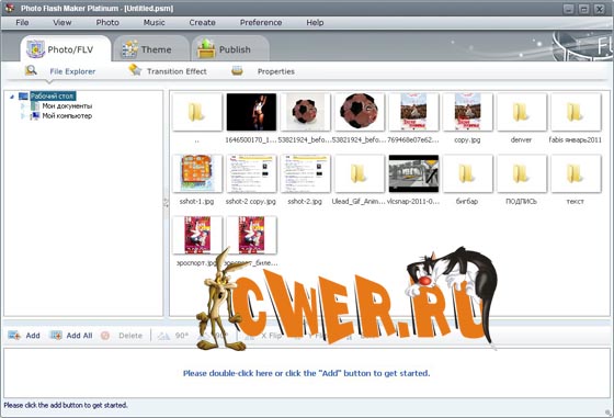 Photo Flash Maker Platinum - программа для создания анимированного FLASH-слайдшоу из обычных цифровых фотографий. Данная утилита предоставляет более 200 эффектов перехода одной фотографии в другую, имеет различные темы внешнего оформления и позволяет устанавливать музыкальное сопровождение. В настройках утилиты можно указать продолжительность показа отдельной фотографии и время ее перехода в другое изображение.
