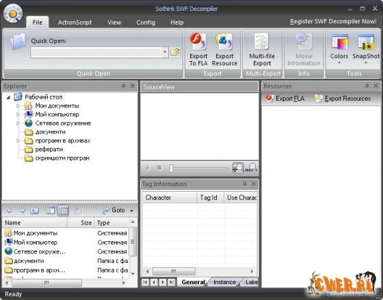 Sothink SWF Decompiler 4.4-Программа для конвертирования SWF в FLA и извлечения из них различных ресурсов. С помощью утилиты можно извлекать звуки, изображения, сценарии, шрифты и т.п. из готовых Flash-роликов (SWF, EXE).