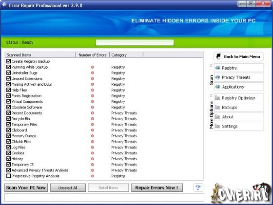 Error Repair Professional - служит для того, чтобы содержать Ваш PC в оптимально работающем состоянии. Очистит и восстановит ошибки в Вашем PC единственным щелчком мыши.