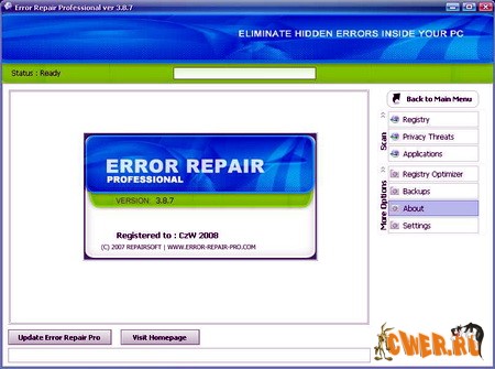 Программа Error Repair Pro - это небольшая утилита для исправления ошибок в настройках операционной системы и реестре. Программа обладает высокой скоростью работы и за считанные секунды проверит Ваш компьютер на наличие ошибочных записей и сама исправит их. Для продвинутых пользователей присутствует ручной режим работы.