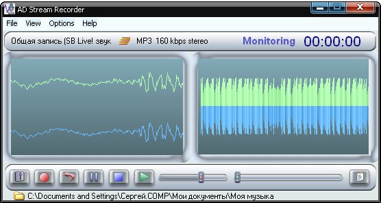 AD Stream Recorder - небольшая программа, позволяющая делать звукозаписи при этом визуализируя все происходящее в виде диаграмм. Программа поможет захватить запись из Интернета, звук из кинофильмов и музыки, которую воспроизводят популярные медиаплееры под Windows, а так же любой звук идущий с вашей звуковой платы в формат MP3 и WAV. Визуальное представление в реальном времени входных звуков в момент записи даст вам возможность сохранить их с высоким качеством.