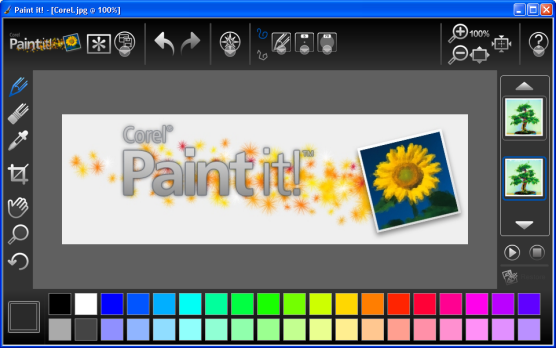 CyberLink YouPaint - функциональный графический редактор с поддержкой сенсорных средств ввода. Программное обеспечение включает полный набор инструментов для рисования, включая перья, карандаши, цветные мелки, ластики и палитра, предоставляющая быстрый доступ к шестидесяти цветам.