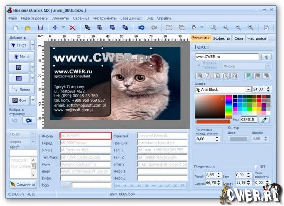 BusinessCards MX - программа для создания и проектирования визиток от польского разработчика. При помощи этой полезной программы вы легко и быстро спроектируете и распечатаете профессиональные визитки. Интерфейс программы спроектирован так, чтобы даже у начинающего пользователя не было проблем с использованием данной программы. Процесс проектирования заключается во вставке готовых доступных в программе элементов таких, как текст, фигуры, изображения и фон, а также произвольном их перемещении на разрабатываемом проекте. Программой используются шаблоны визиток, которые можно подготовить самому или использовать готовые образцы визиток, доступные в программе. Интерфейс имеет многоязычную поддержку, включая поддержку русского языка.