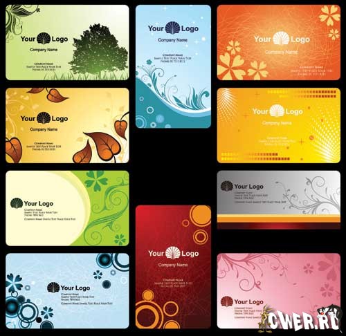 14 визитных карточек в формате CDR (CorelDRAW), не в кривых