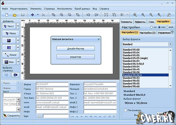 При помощи этой программы Вы легко и быстро спроектируете и распечатаете профессиональные визитки.