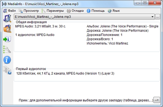 MediaInfo - программа, которая предоставляет подробную информацию об аудио и видео файлах, показывает, каким кодеком сжато видео, с каким битрейтом, какое в нем соотношение сторон и количество кадров в секунду. Для аудиофайла MediaInfo показывает используемый кодек, битрейт, язык, количество каналов, частоту выборки и т.д. Показав сведения о файле, программа тут же посоветует, где можно скачать недостающий кодек или проигрыватель.