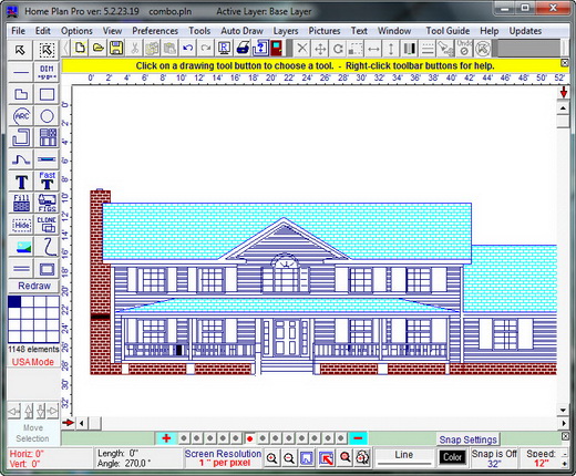 Home Plan Pro - отличная программа для быстрого и легкого черчения плана помещений, мест и архитектурного дизайна. Программа предлагает множество различных инструментов, которые помогут вам начертить план вашего дома, квартиры, жилых помещений и т.д. Пользователю предлагаются такие инструменты, как линии, овалы, прямоугольники, черчение стен, дверей, окон, арок, кирпичных стен, вставка изображений, текста, дублирование предыдущего элемента и многое другое.
