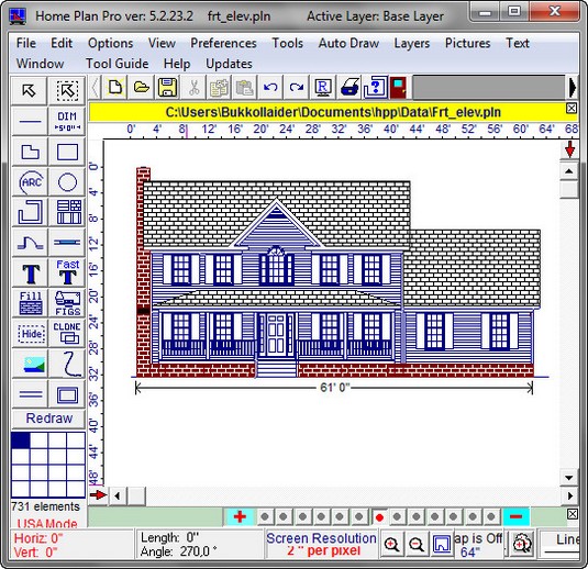Home Plan Pro - отличная программа для быстрого и легкого черчения плана помещений, мест и архитектурного дизайна. Программа предлагает множество различных инструментов, которые помогут вам начертить план вашего дома, квартиры, жилых помещений и т.д. Пользователю предлагаются такие инструменты, как линии, овалы, прямоугольники, черчение стен, дверей, окон, арок, кирпичных стен, вставка изображений, текста, дублирование предыдущего элемента и многое другое.