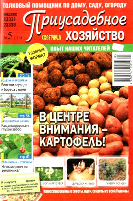 «Приусадебное хозяйство» от "Советчицы" - толковый помощник по дому, саду, огороду, все тонкости выращивания, обрезки, поливки, ландшафтного дизайна. В центре внимания – картофель.
