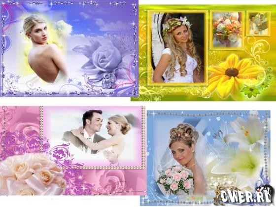 Многослойные свадебные фоторамки. Отключая или добавляя слои можно менять вид рамок на свой вкус.