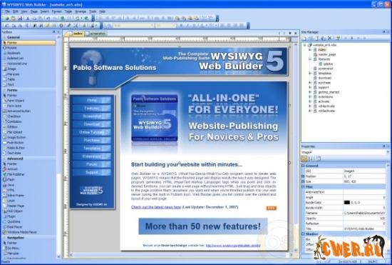 WYSIWYG Web Builder - программа для создания веб-страниц, которая автоматически создает HTML-код, в то время, как вы просто размещаете объекты, т.е. знание HTML от вас совершенно не требуется. Просто перетащите необходимые объекты в любое место страницы. После этого останется только закачать получившиеся файлы на сервер, с помощью встроенного инструмента "Публикация".