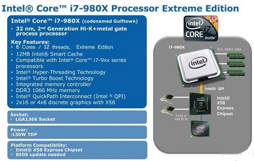 Мы уже упоминали о том, что корпорация Intel планирует порадовать компьютерных геймеров и энтузиастов выпуском своего первого шестиядерного процессора, предназначенного для настольных компьютеров - Core i7-980X Extreme Edition. По слухам, данный чип, известный также под кодовым наименованием Gulftown, должен появиться в середине следующего месяца, примерно 14-16 марта.