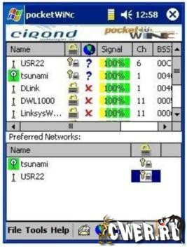 PocketWinc - программа поиска и подключения Pocket PC КПК к WiFi сетям, которая сильно упрощает процедуру подключения.