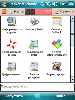 Pocket Mechanic - утилита управления картами расширений: форматирование, дефрагментация, проверка и восстановление, тестирование производительности, тестирование на физические ошибки, удаление неиспользуемых файлов, установка имён папок для карточек (только для Windows Mobile 2003!), просмотр конфигурации TCP/IP и многое другое...