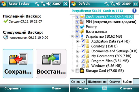 Resco Backup - основное предназначение программы это резервное копирование содержимого вашего КПК. Программа умеет работать с инкрементальными архивами, шифровать архивы с использованием алгоритма AES, а также сравнивать архив с содержимым КПК.