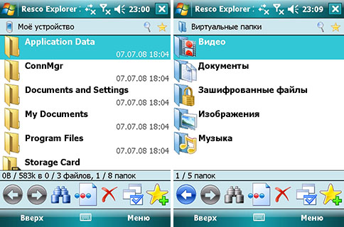 Resco Explorer - мощный файловый менеджер с полным набором стандартных функций (навигация по папкам, копирование, перемещение, удаление файлов и папок) и множеством дополнительных возможностей.