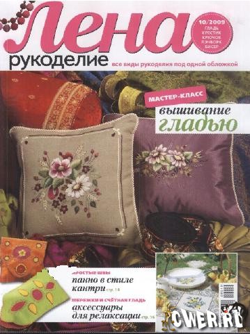 Журнал по различным видам рукоделия: вышивке крестом (вышитые занавески, подушки, картины, абажур, шкатулки на разнообразные сюжеты), пэчворку (подушки, картины, сумки), вышивке пуговицами, вязанию (картины и подушки с узорами из шерсти).