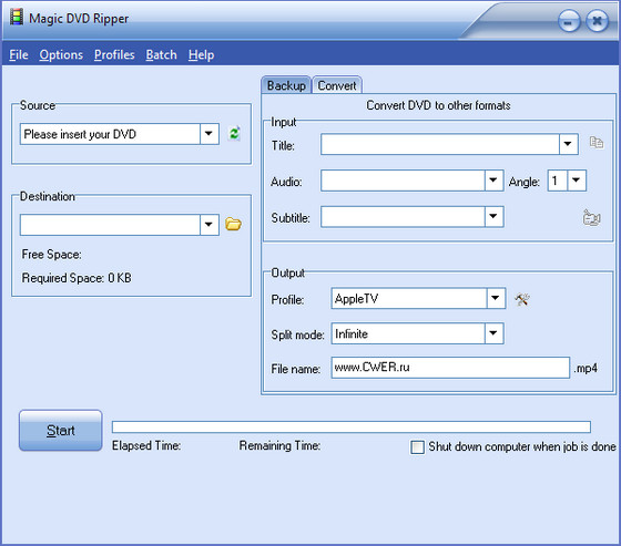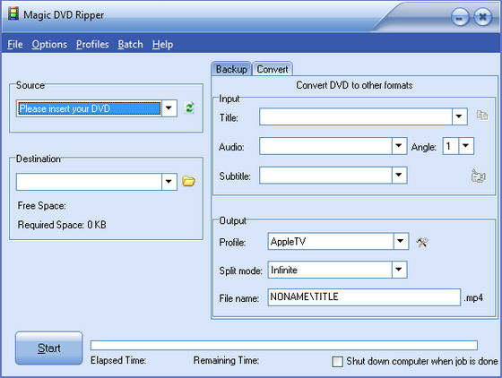 Magic DVD Ripper - простая программа для конвертирования DVD в популярные форматы SVCD, VCD или AVI. В процессе конвертирования DVD в выбранный формат вы можете установить приоритет процесса, если хотите параллельно выполнять другие действия на компьютере. Magic DVD Ripper позволяет определить главные необходимые настройки выходного и исходного файлов: субтитры, язык, формат выходного файла, его название, параметры разбивки. Вы можете выбрать один из предложенных размеров файла, в зависимости от того, на CD какого размера будет записан полученный файл.