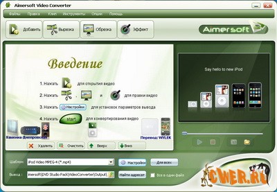 Aimersoft DVD Ripper - граббер видео DVD в другие видео форматы, конвертер аудио и видео файлов, создание и прожиг аудио и видео дисков. Поддержка MP4, AVI, MPG, MPEG, VOB, WMV, DivX, XviD, MOV, DAT, VOB, IFO, 3GP, 3GPP, ASF, FLV, WMA, M4A, MP3, AC3, WAV и других форматов...