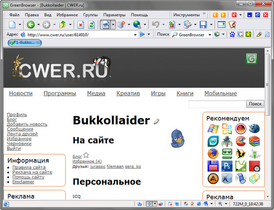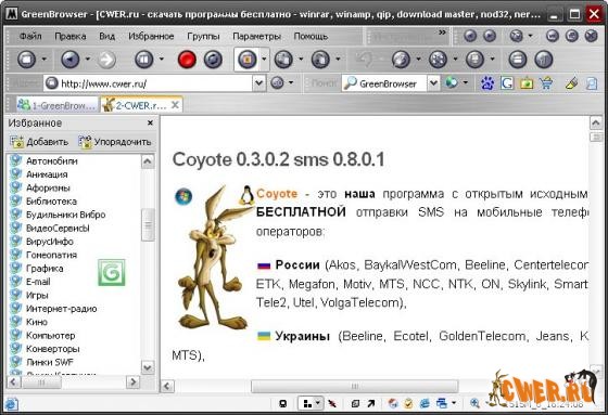 GreenBrowser - многовкладочный браузер на движке Internet Explorer с расширенными возможностями: