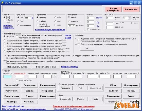 Программа "Электрик" предназначена в помощь электрификаторам всех уровней в быту