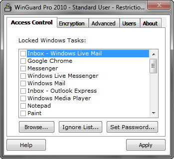 WinGuard позволяет заблокировать доступ к программам, окнам, файлам и папкам. Кроме этого, с её помощью можно установить защиту практически на каждый элемент операционной системы, в том числе на рабочий стол и папку Мой Компьютер, закрыть доступ в Интернет, запретить установку/удаление ПО и запуск консоли, заблокировать Панель управления, Internet Explorer или полностью компьютер. Поддерживается многопользовательское использование с индивидуальными настройками для каждого пользователя.