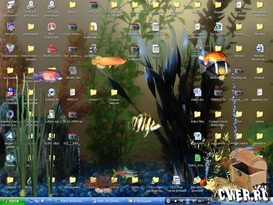 Aqarium Desktop — замечательная программа, не скринсейвер, но заставка, которая может быть запущена ярлыком с рабочего стола, который она превратит в аквариум, причем рыбки будут плавать поверх значков рабочего стола. Любую рыбку в Aqarium Desctop можно «подвинуть» мышкой, а нажав правую кнопку мыши и выбрав close вернуться к обычному рисунку рабочего стола.