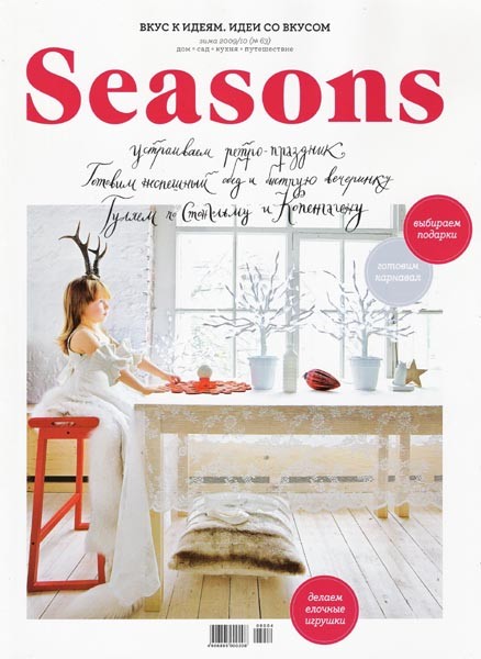 Журнал Seasons - для тех, кто умеет ценить маленькие радости жизни. Для тех, кому важно, из какой чашки будет выпит утренний кофе, какой букет поставить на праздничный стол, каким блюдом удивить гостей, собравшихся на вечеринку. Куда поехать отдохнуть, чтобы привезти из поездки не только загар, но и впечатления, потрясающие фотографии и изящные вещицы для дома.