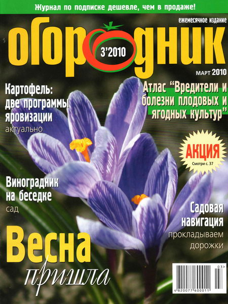 Ежемесячный журнал для владельцев загородных коттеджей и дач. В этом номере: садовые дорожки, сроки выращивания рассады, треугольные чудо-грядки, о выращивании орехов, цветочный подиум: драцена, внутренний дворик (патио), очищающие воздух растения, чем питаться, чтобы не заболеть, как закаляться.