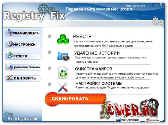 RegistryFix выявляет и устраняет ошибки в системном реестре Windows, причем делает это очень хорошо, и без необходимости перезагрузки компьютера для того, чтобы изменения вступили в силу. Список областей очистки реестра довольно широк: - программная область, - установка/удаление программ, - установленные шрифты, - совместно используемые файлы, - файлы помощи, - область автозагрузки программ, - системные сервисы и драйвера - ярлыки и т.д. Перед началом процесса чистки можно сделать резервную копию реестра.
