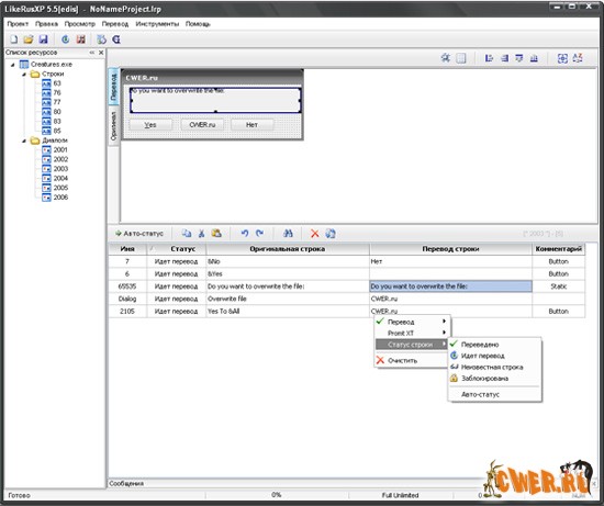 LikeRusXP - программа универсального перевода программ. Переводит ЛЮБЫЕ программы, библиотеки, а также файлы любых других форматов и содержания на русский язык с английского.